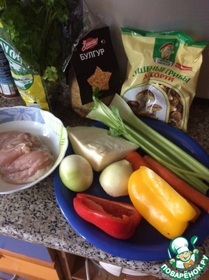 Ингредиенты для «Куриный суп с булгуром и грибами»: