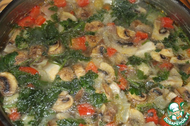 Рецепт «Куриный суп с булгуром и грибами»: