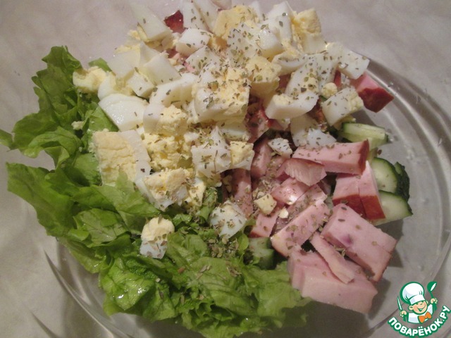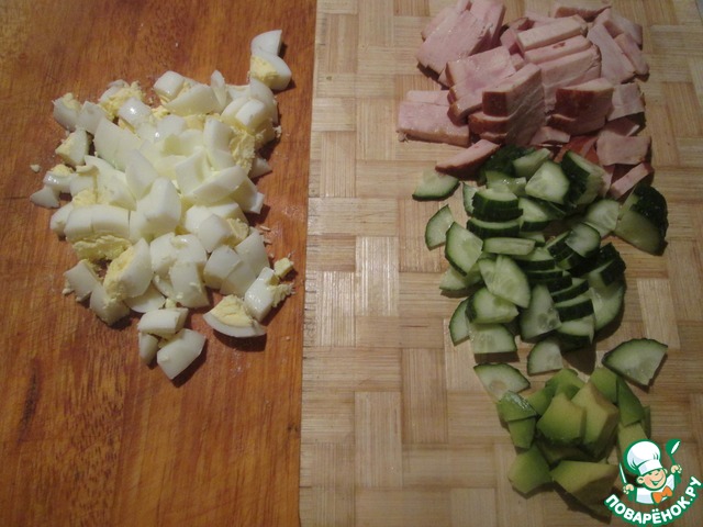 Рецепт «Салат с авокадо, яйцами и ветчиной»: