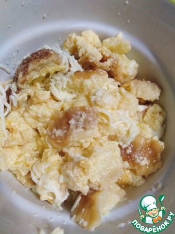 Молоко подгреть (можно и холодное, просто этот пункт сокращает время пребывания в духовом шкафу). Добавить сахар, яйца (перемешать вилкой) и залить полученной смесью наши сухари.
