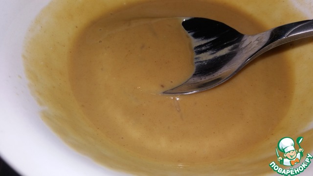 Для соуса смешать мед с горчицей и лимонным соусом.