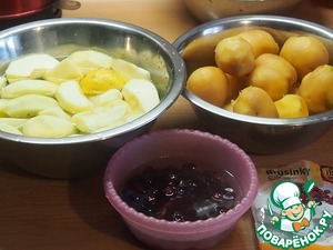 Картофель отварить в кожуре до готовности, остудить, очистить. Яблоки очистить, удалить серединку и нарезать ломтиками, залить холодной водой с соком половины лимона. Бруснику или изюм промыть и на 10 минут залить кипятком, затем откинуть на сито.