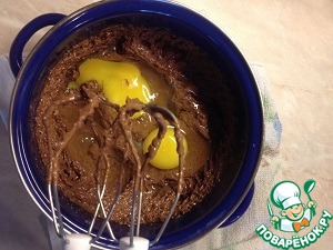 Добавьте яйца и взбейте все миксером до однородного состояния