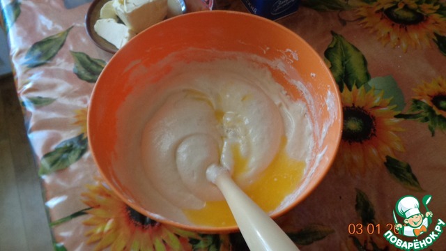 В заключении добавляем растопленное и остуженное сливочное масло. Всё тщательно и аккуратно перемешать.