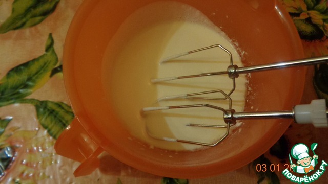 Взбиваем сливки. Вводим сливки в остывший заварной крем и перемешиваем венчиком, чтобы не было комков.