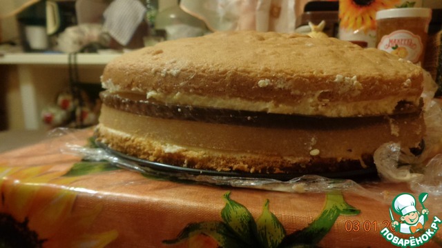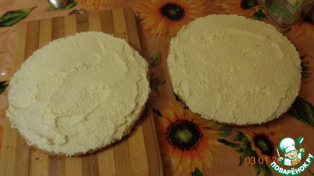 Сверху кладем нашу заготовку из морозилки и накрываем нижней частью коржа.