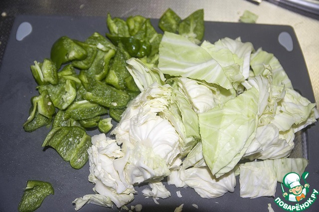 Капусту и перец режем на крупные кусочки