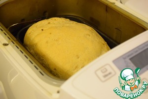 После сигнала ХП, добавляем чеснок и вновь нажимаем кнопку "Старт". Вот такое тесто получилось при замесе.