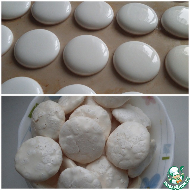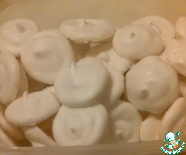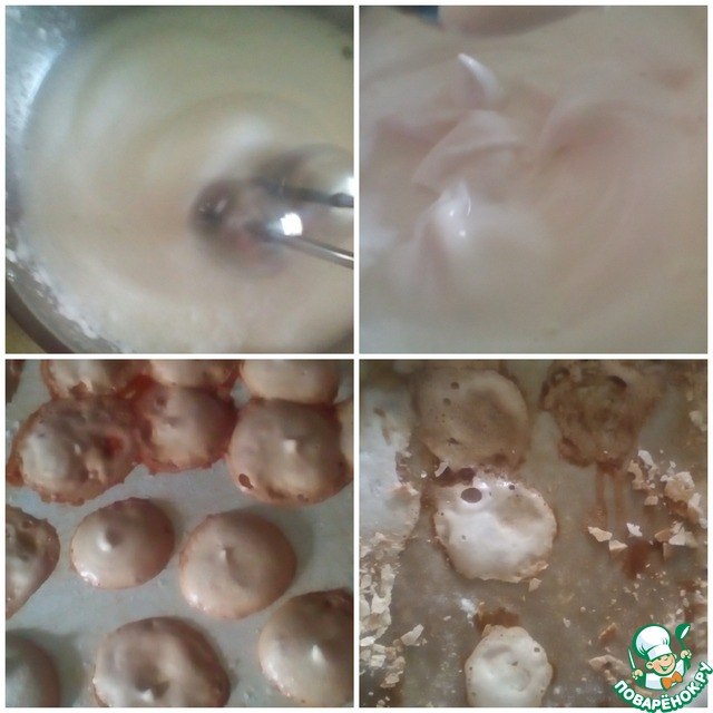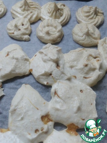 Отсадила на бумагу хорошенькие «башенки» с пимпочкой на макушке , опыт приготовления обычного безе имею и подвоха не ожидала ..