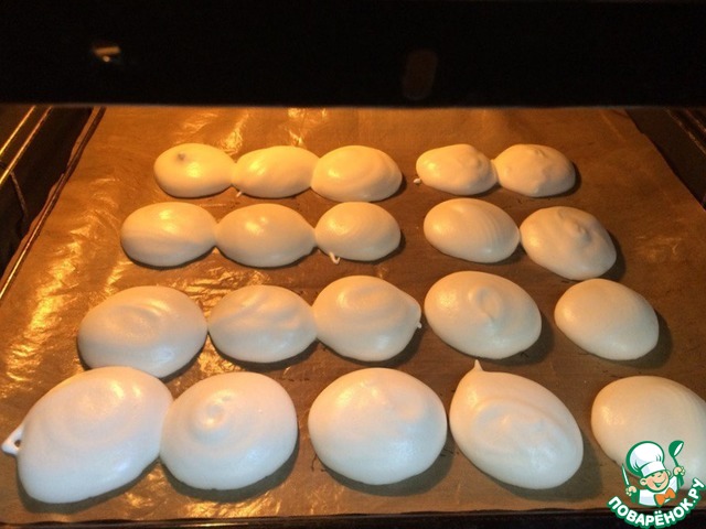 Готовность безе можно проверить так: снять одно безе - если оно твердое и легко снимается с листа, значит готово. Отключаем духовку и оставляем наше безе в ней до полного остывания (с закрытой дверцей).