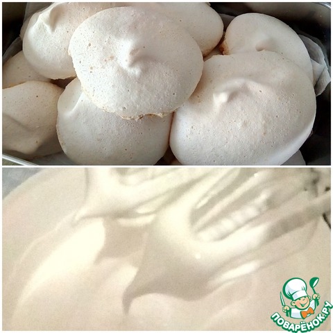 [+5]у меня получились слегка крем-брюле за время остывания. очень вкусно, хотя я не любитель безе. из белков безе я ни разу не делала. вот с отваром от нута решила попробовать. привкуса гороха не было. отвар собственноручный. выкладывала безе чайной ложкой.