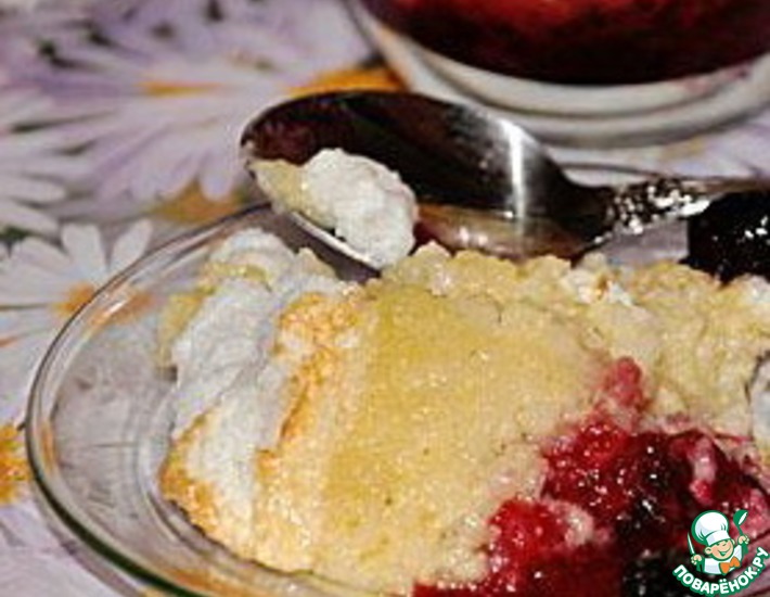 Применим волшебство первого уровня - возьмем кашу, ягодки, да еще сверху безе выложим. И в духовку. И будет нам счастье. Сладкое, с воздушной шапочкой, на послевкусие - кислинка ягодная. Дети такое чудо едят с удовольствием.