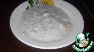 Отвариваем овсяные хлопья. Я варю так: на 200 г воды кладу 2 ст. л. хлопьев, довожу до кипения и на медленном огне варю минут 5. Затем остужаем. -