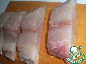 Филе порежем "полосами", а можно и еще пополам. Смешаем оливковое масло, соевый соус и лимонный сок (из ½ лимона). Рыбу выкладываем в удобную для Вас посудину, перчим и заливаем этой смесью. Так как соевый соус сам по себе немного солоноват, то, учитывая вкусы моей семьи, я рыбу не солил…
