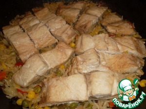 Тунец на рисово-овощной подушке