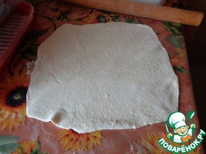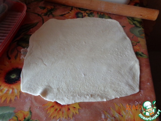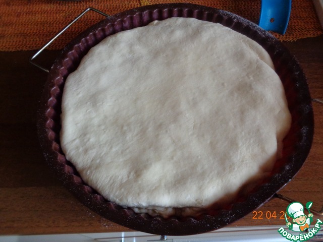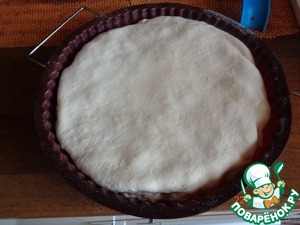 Тесто раскатать в круг, превышающий диаметр формы на 2 см.