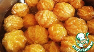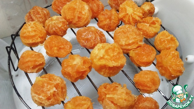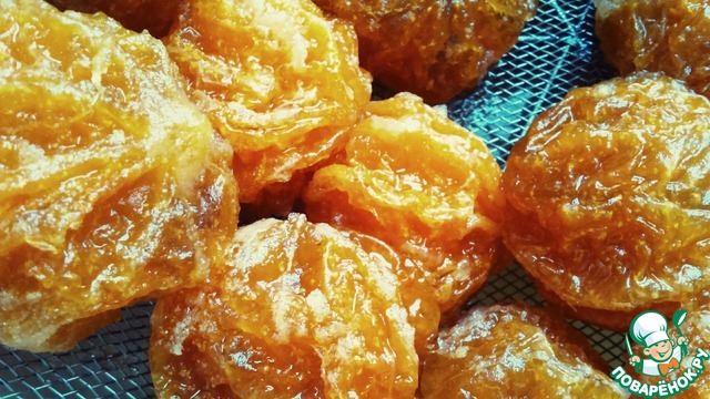 Мандарины, подсохнув, образуют сверху корочку, а внутри полны сиропа. По сути, из мандарина получается сосуд с сиропом. Если бы не эта особенность, я назвала бы блюдо цукатами.