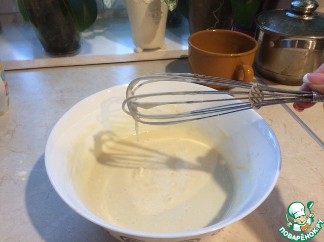 3. Добавляем просеянную муку и замешиваем тесто. Оно должно быть как густая сметана. -
