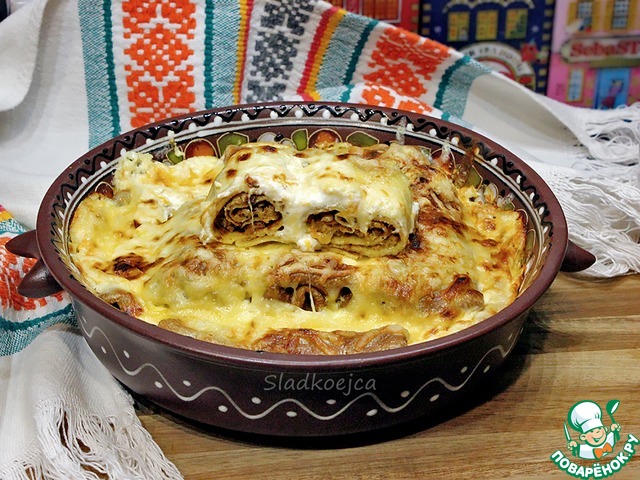 Рецепт «Блинная запеканка со сметанным соусом»: