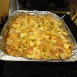 С помощью двух ложек выкладываем получившуюся смесь в форму на сыр. -