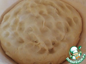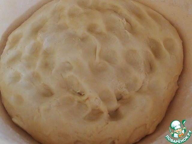 Тесто ладонями прижать ко дну миски, сделать пальцаи углубления, накрыть миску полотенцем и поставить в теплое место на 30 минут.