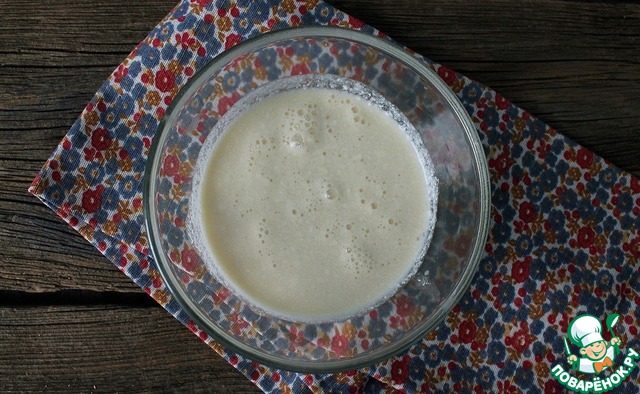 В теплую молочную сыворотку добавьте сахар и соль, размешайте до растворения.