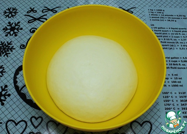 Тесто округлите, положите в смазанную растительным маслом миску, накройте и уберите в теплое место до увеличения в объеме, минут на 40-50.