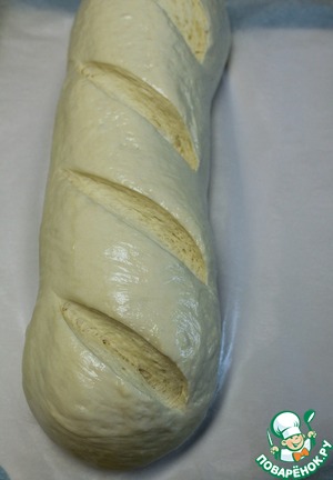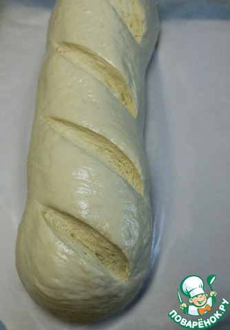 Перед посадкой в печь, булку смажьте водой и сделайте надрезы. Я делаю при помощи лезвия.