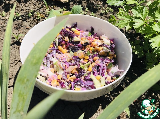 Вкусный салат из красной капусты с кукурузой!