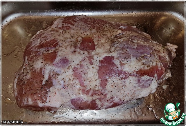 Смесь хорошо перемешать и свинину тщательно натереть. Можно даже сделать что-то типа рассола, но я не стал.