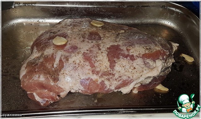И еще одна «чиста вкусовуха». Можно нашпиговать мясо чесноком. Я не стал. У всех свои пристрастия. Так что, если любите – не забудьте.