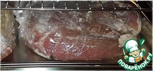 Мясо поместить в пакет для запекания. Хочется ведь, чтобы сочно получилось, вот и упаковывайте, не ленитесь.