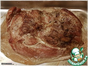 А потом уложить отмассированный и натертый кусок свинины на эту подкладку.