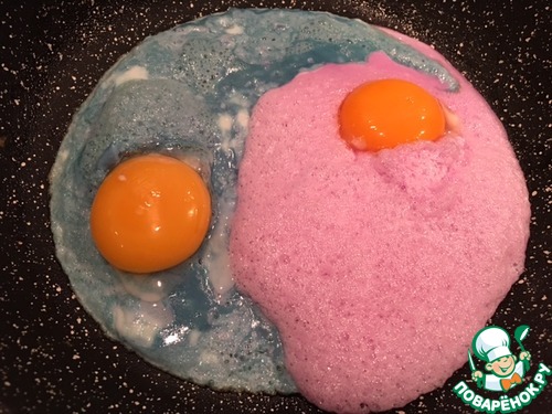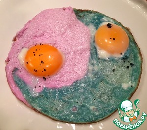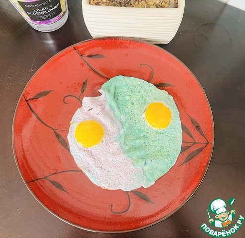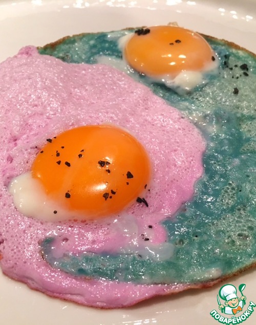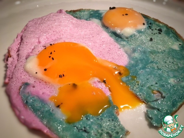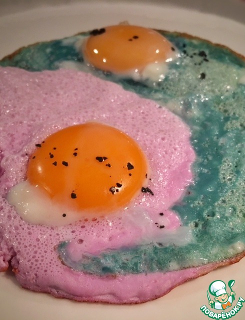 Очень своеобразно!Никогда не видела и не пробовала яичницу в цвете.