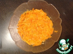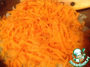 К луку добавить морковь и обжарить до мягкости. В конце слегка посолить. Остудить.