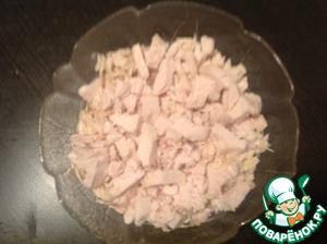 Затем выложить мясо курицы. При необходимости посолить.