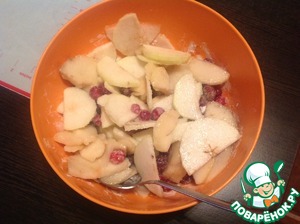 В миске смешать грушу, клюкву, крахмал, корицу и 6 ст. л. сахара. У меня клюква замороженная. Начинка готова.