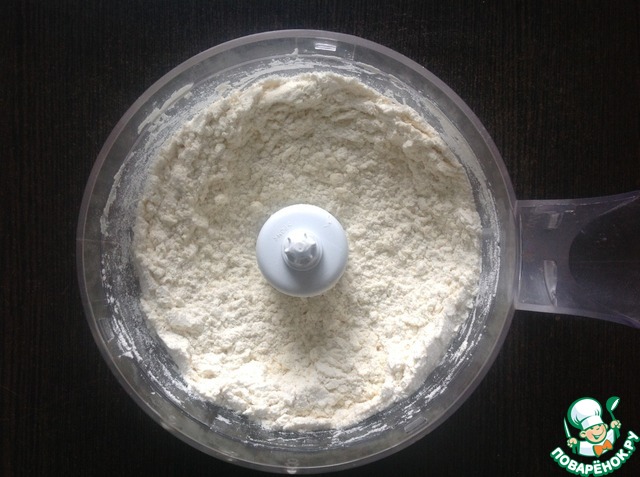 Приготовим тесто. Масло или маргарин нарезать маленькими кубиками. В миске смешать муку, масло и соль до состояния хлебной крошки. Я обычно смешиваю в процессоре, получается намного быстрее.