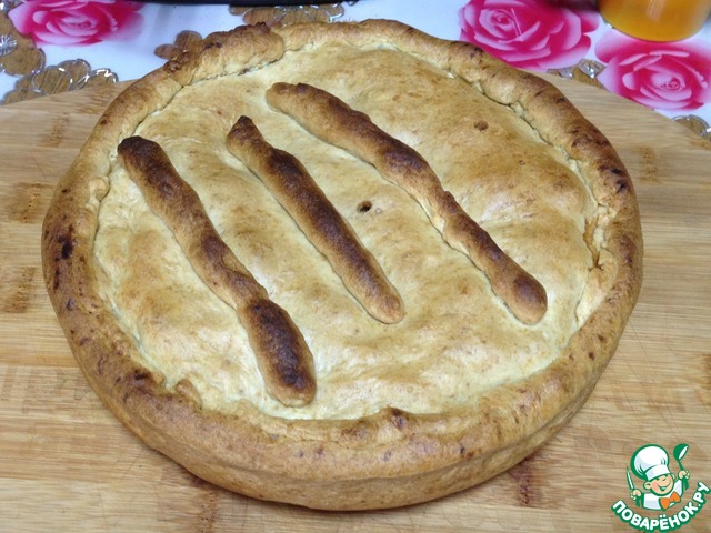 Простой в приготовлении, но тем не менее вкусный пирог с сочной начинкой. Отлично подойдёт для вечернего чаепития, особенно для любителей не очень сладкой выпечки.