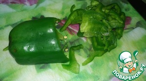 Нарезаем соломкой перец болгарский.
