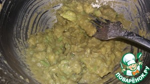 Для соуса: размять авокадо вилкой, добавляем мелко нарезанный базилик и все остальные ингредиенты.
