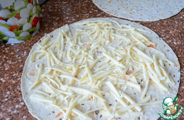 Когда нужно что-то быстро сообразить на перекус, на помощь нам приходят полуфабрикаты или готовые фабричные продукты. В этом рецепте используются большие лепешки тортильи.
