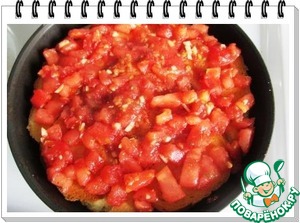 Пока запекается основа пирога, делаем помидорное покрытие.