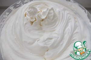 Охлажденные белки взбиваем с сахаром и лимонной кислотой до гладкой блестящей устойчивой массы.