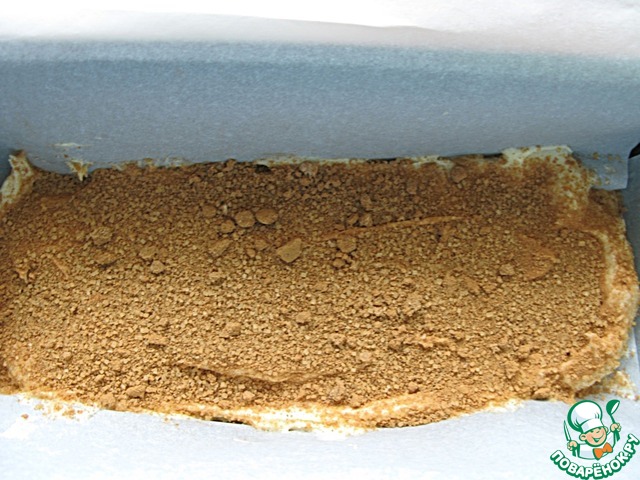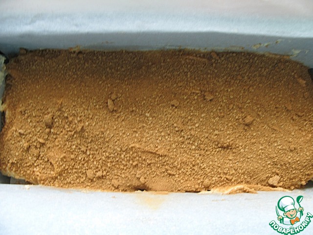 Треть теста выложить в форму (12 х 25 см), застеленную бумагой для выпечки или фольгой, посыпать половиной коричного сахара.