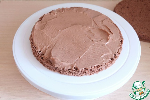 Бисквитный корж смазать кремом. Толщина кремового слоя зависит от вашего желания.