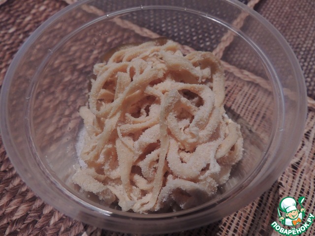 Смешиваем со всеми специями, вино я беру белое сухое, можно добавлять и красное, и коньяк, и даже водку. Но после экспериментов было выбрано МНОЮ белое. По поводу нитритной соли много споров, я делала и без неё, но дабы не травануть своих любимых, ведь у меня не производство, а в домашних условиях трудно соблюсти все ньюансы, решила, что всё- таки буду её добавлять. Кстати и цвет у такой колбасы очень красивый получается, розовый, а с обычной солью сероватый. По поводу чеснока. Чеснок берем исключительно сушеный, при вялении свежий может испортиться и весь труд на смарку.