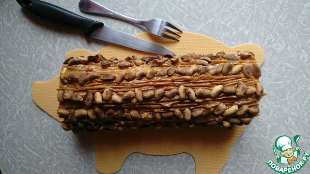 Рецепт «Рулет с вареной сгущенкой и арахисом»: