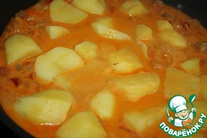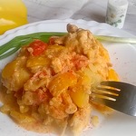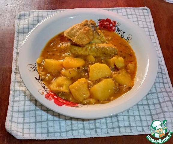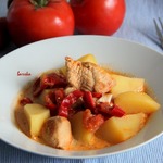 [+5]Готовила из 2 кур.грудок. Из овощей: 1 луковица, 1 помидор, 2 остроносых перца, чуть меньше сладкой паприки. Соус - мега вкусный: хоть картофель в нем размять, хоть хлебушком вымакать.. Да, картофель заранее не отваривала...