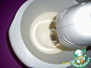 Для начала я смешала миксером сметану и сгущенное молоко, затем добавила весь пакетик пудинга.